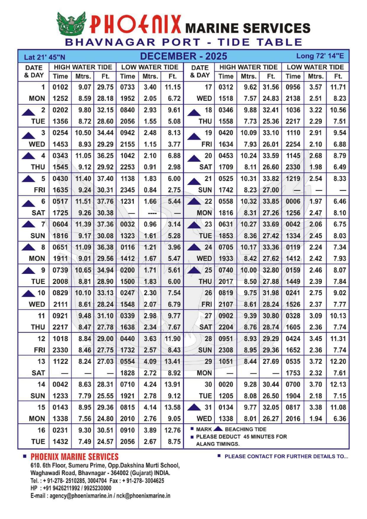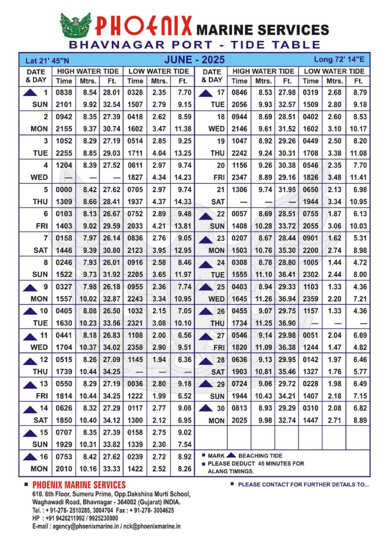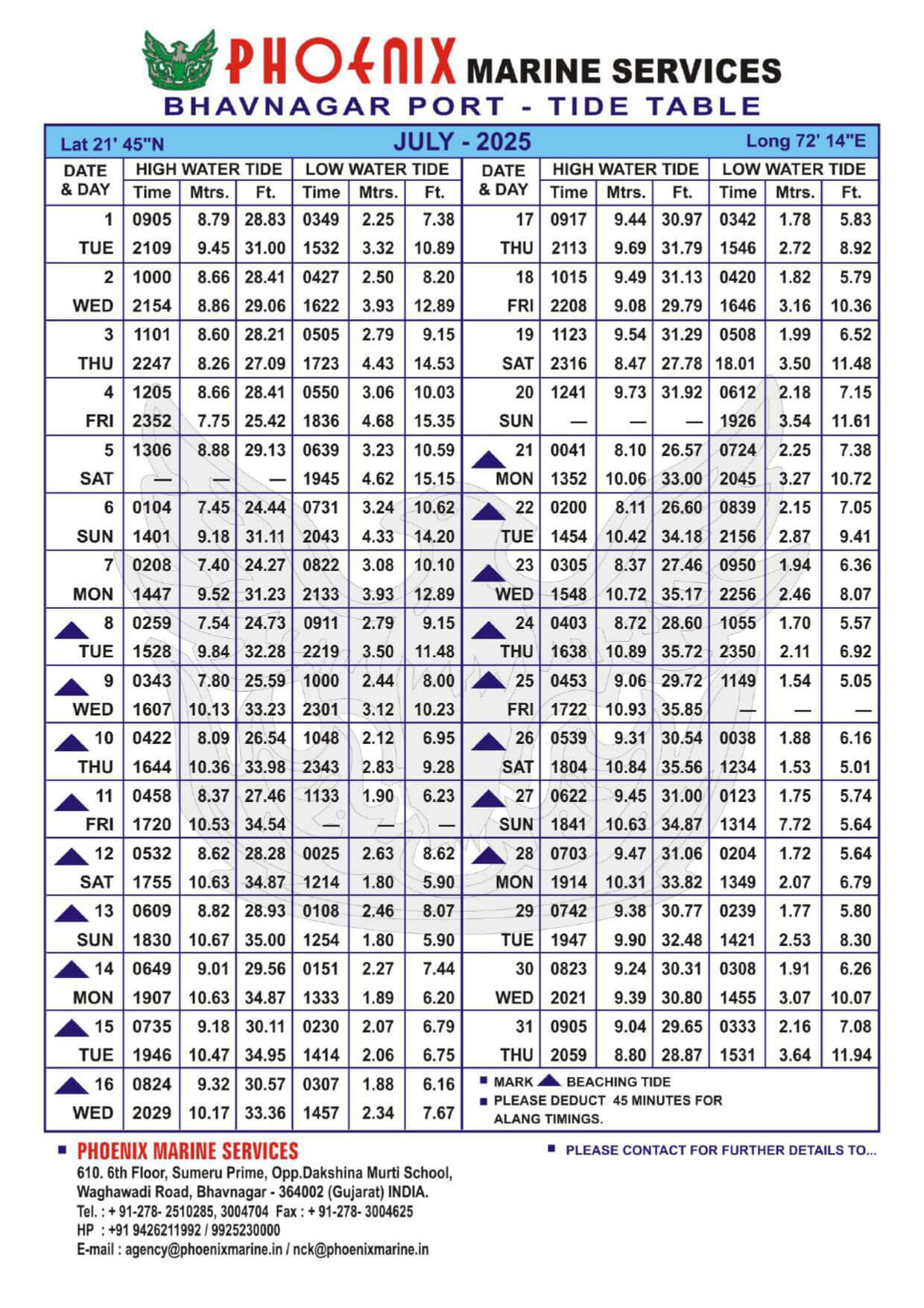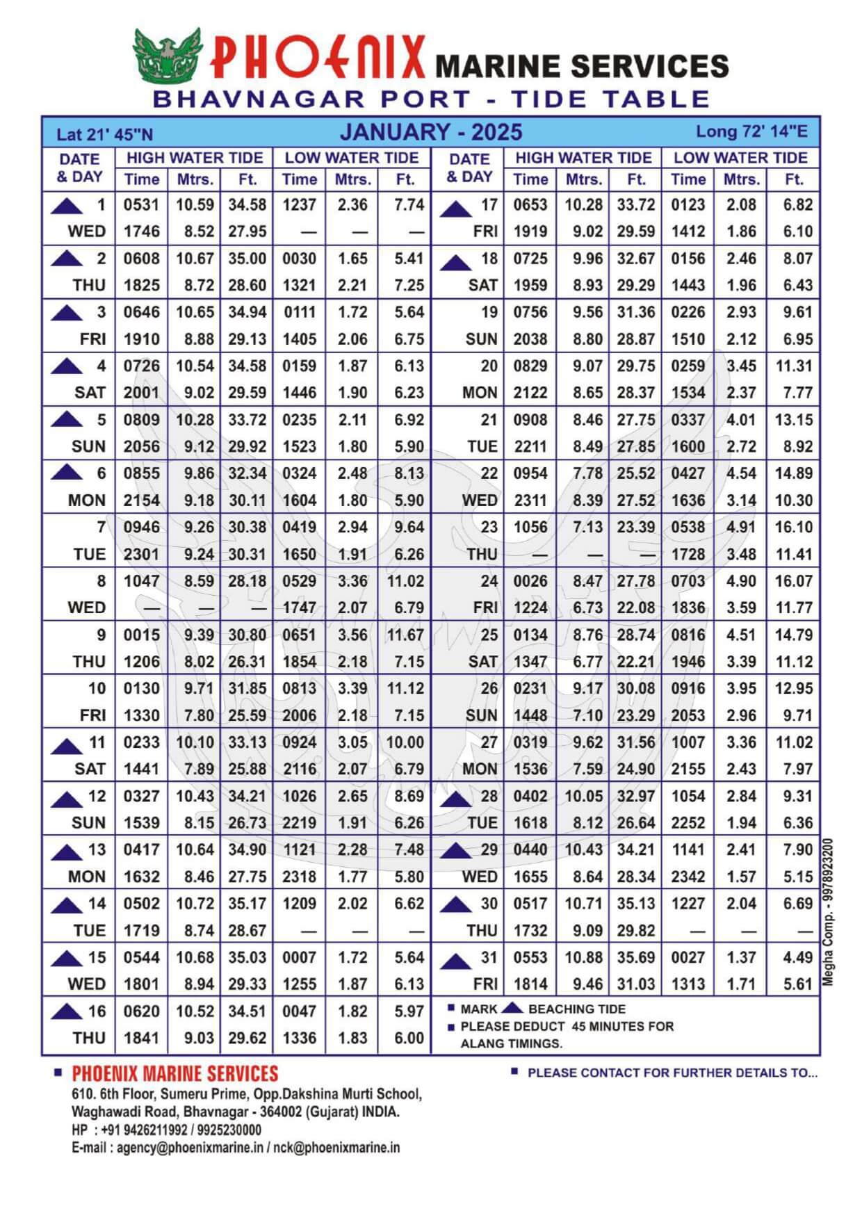 Listed below are details of Bhavnagar Tide Table For Year 2025 for your ready reference.