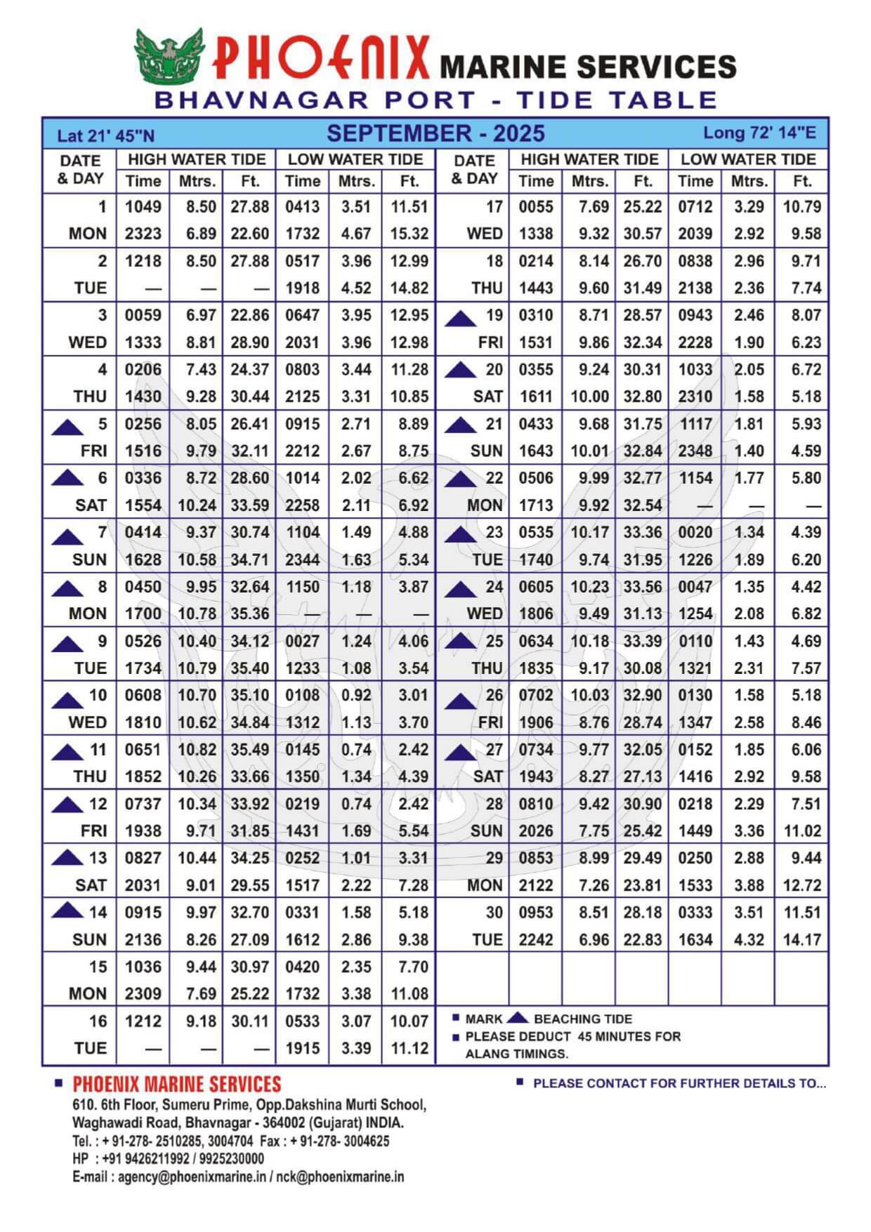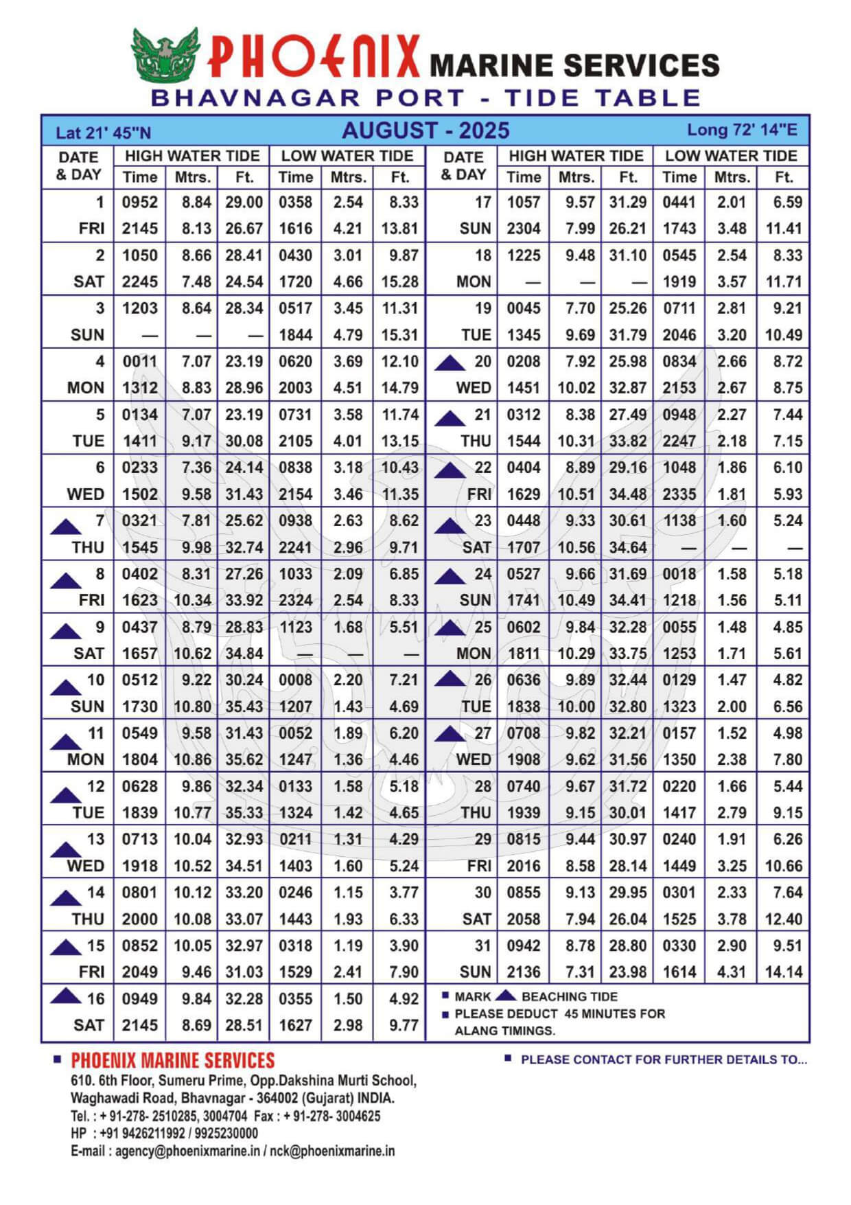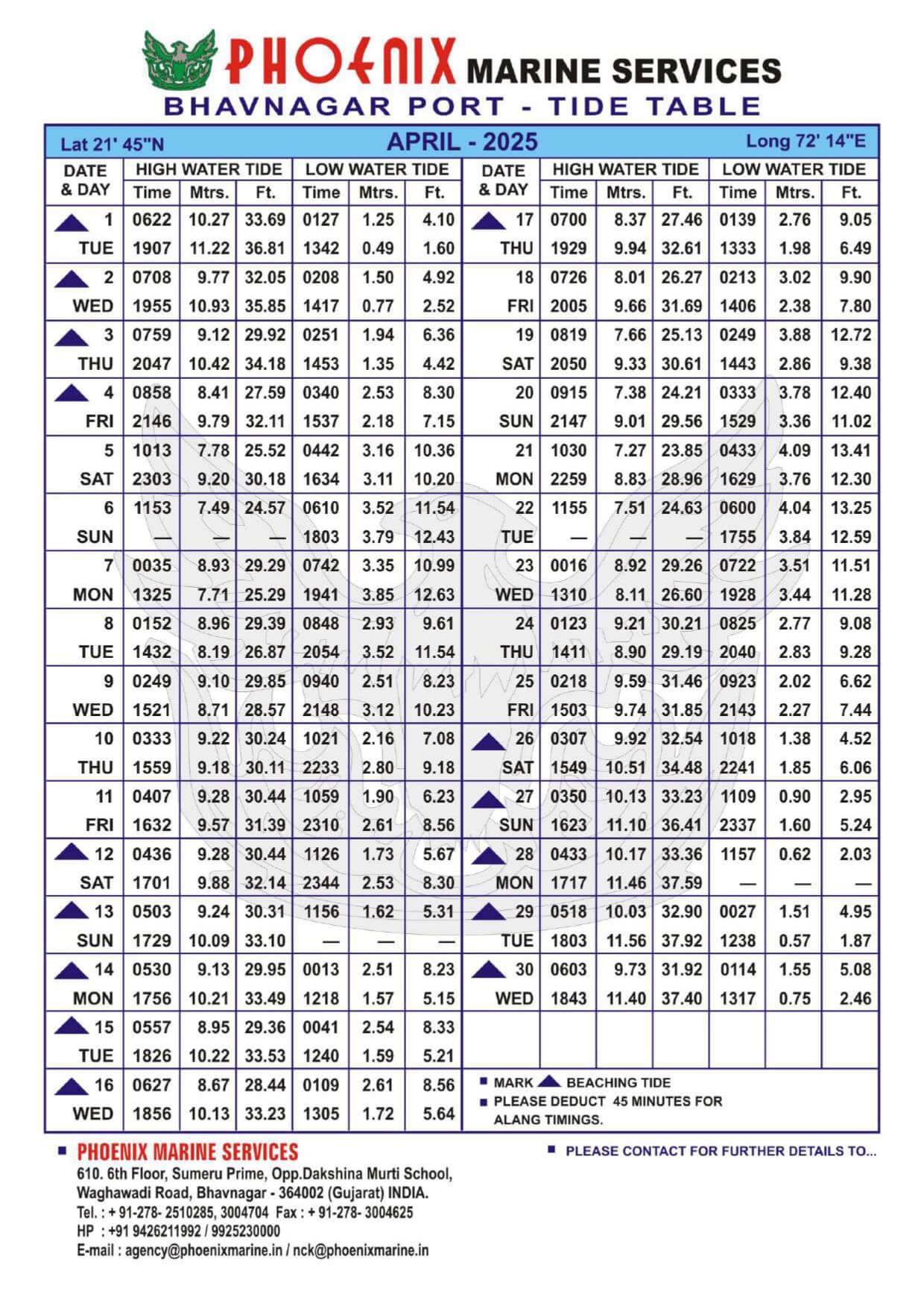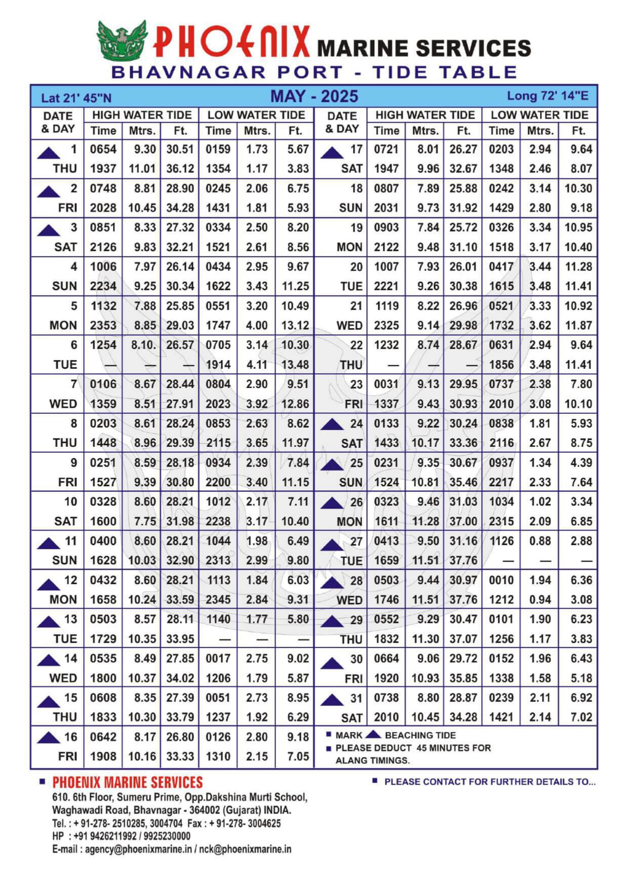 Listed below are details of Bhavnagar Tide Table For Year 2025 for your ready reference.