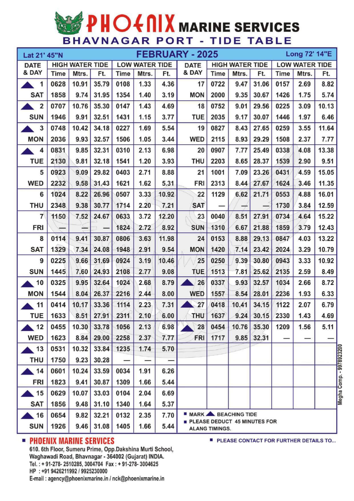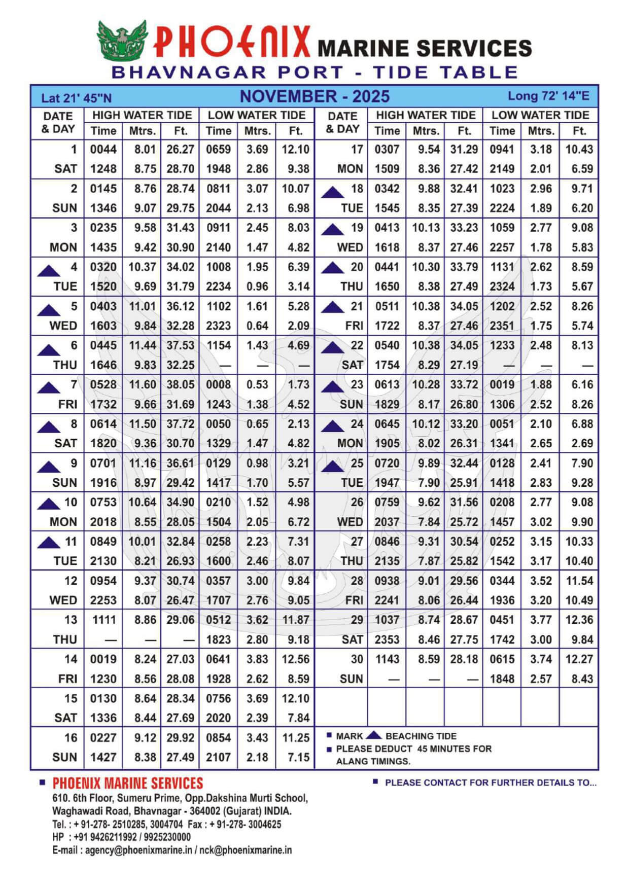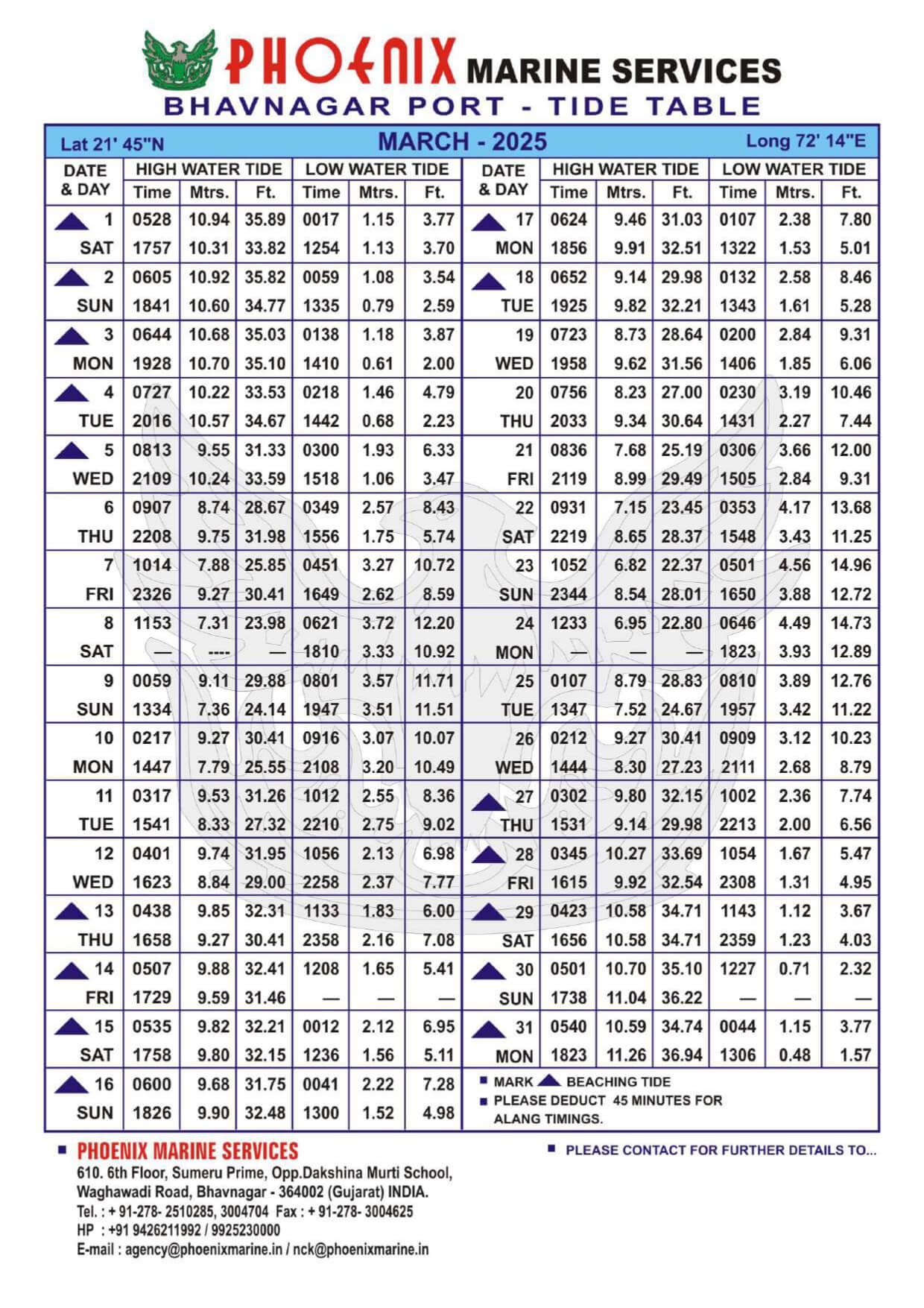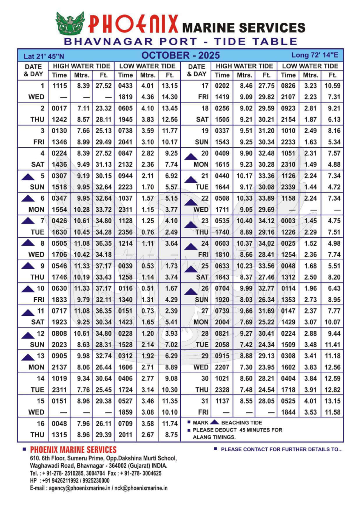 Listed below are details of Bhavnagar Tide Table For Year 2025 for your ready reference.